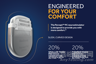 最后,在產(chǎn)品設(shè)計(jì)上,Percept™PC也更小、更薄、更符合人體工程學(xué)。據(jù)美敦力官方披露PerceptIMPC相較ACTIVAIMPC體積縮小了20%,側(cè)面也輕薄了20%。