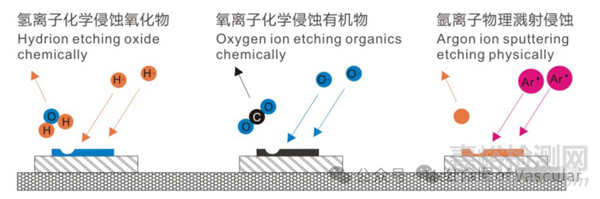 (a)氧等離子清洗有機(jī)污物 (b)氫等離子清洗污染物