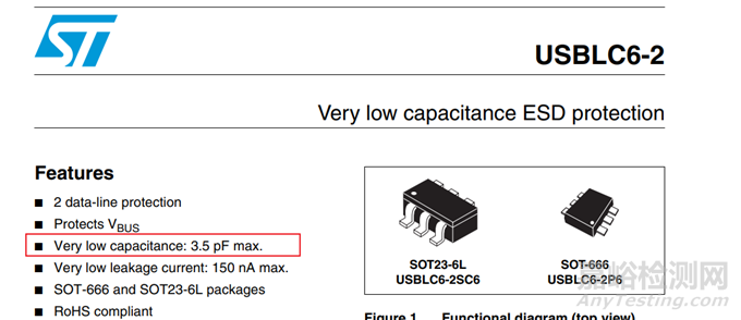 如USB、HDMI等的防靜電二極管的結(jié)電容都是只有幾個pF或者更低。如下為USB專用TVS管參數(shù):