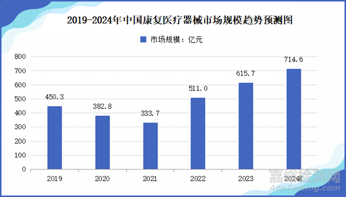 據相關報告顯示,2022年中國康復醫(yī)療器械市場規(guī)模達511.0億元,同比增長13.5%;2023年市場規(guī)模約615.7億元;2024年市場規(guī)模預計將達714.6億元。