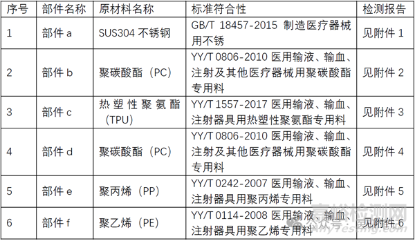 各組件所有的原材料均符合相應(yīng)的標(biāo)準(zhǔn),詳見表1。