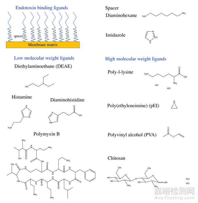 最常用的親和配體包括脫氧膽酸、二甲胺配體、組氨酸、多粘菌素B (PMB) 和聚陽離子配體等。