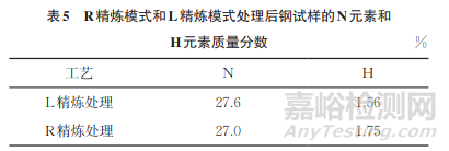 (3)L精煉處理比R精煉處理的N元素含量升高,H元素含量降低,兩種精煉模式下該鋼試樣的力學性能測試結果無明顯差異。