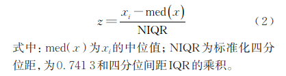 采用中位值和標準化四分位距穩(wěn)健統(tǒng)計法對各參加機構(gòu)的測定結(jié)果轉(zhuǎn)換值進行穩(wěn)健統(tǒng)計分析,根據(jù)GB/T 28043— 2019 中的z比分數(shù)法對各參加機構(gòu)測定結(jié)果進行判定,見公式(2)。