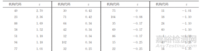 表1 參加機構(gòu)的z比分數(shù)