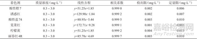 Tab. 1 Linear ranges of mass concentration,linear equations,correlation coefficients,detection limits and quantitation limits