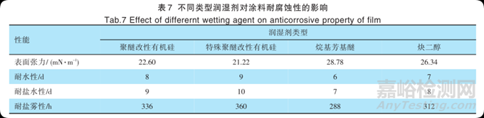 3.4.1 潤(rùn)濕劑對(duì)涂膜性能的研究