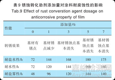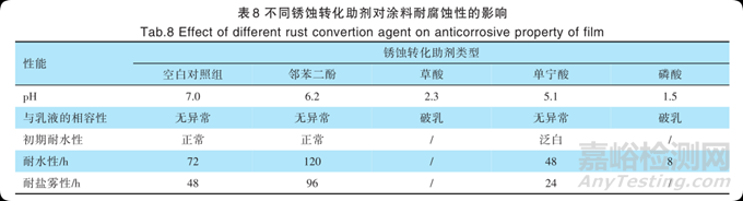 3.4.2 銹蝕轉(zhuǎn)化助劑對(duì)涂膜性能的研究