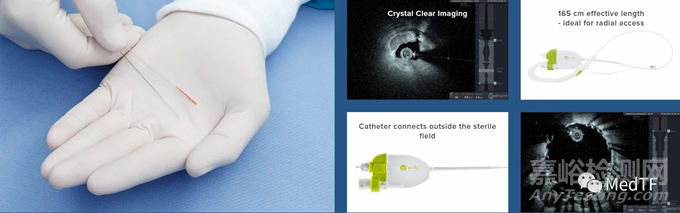 還開發(fā)一款專用于冠狀動(dòng)脈的OCT產(chǎn)品Vis-Rx。Vis-Rx是一款成熟產(chǎn)品,已經(jīng)上市。Vis-Rx是目前已上市最小的OCT導(dǎo)管。Vis-Rx的外徑僅為1.8Fr,有效長(zhǎng)度為165厘米。