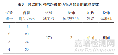 1.4.2 保溫時(shí)間對(duì)烘烤硬化值檢測(cè)的影響試驗(yàn)
