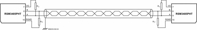 如圖所示,在實(shí)際應(yīng)用中,RS-485通信線可以使用屏蔽雙絞線,并且屏蔽層單點(diǎn)接大地,可以有效抑制電快速脈沖群騷擾耦合到通信線上。
