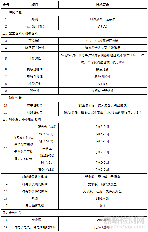 表1 航空電氣電子設(shè)備緩蝕劑技術(shù)要求