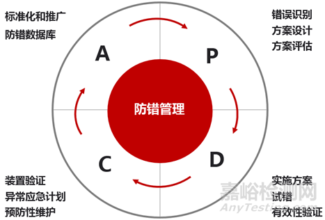 防錯管理,是由防錯設計、防錯的實施、防錯驗證和防錯經(jīng)驗教訓的沉淀四個環(huán)節(jié),共同組成的“P-D-C-A”閉環(huán)過程。