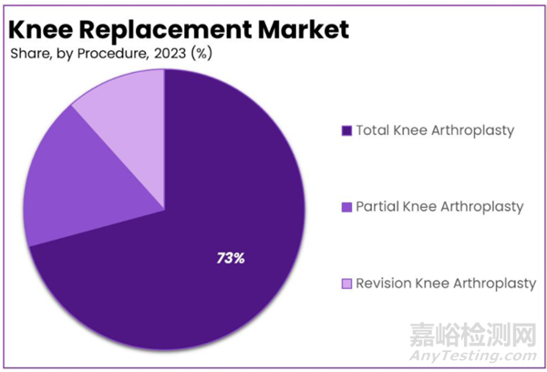 2023年時,全膝關(guān)節(jié)置換(TKA)細(xì)分市場在全球市場中占據(jù)主導(dǎo)地位,占據(jù)了總收入份額的73%。