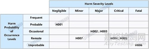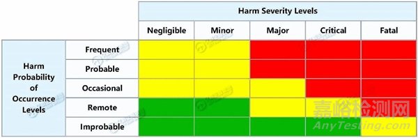 示例:使用上表所描述嚴(yán)重性和發(fā)生概率級(jí)別的分層風(fēng)險(xiǎn)評(píng)級(jí)(見下圖↘)