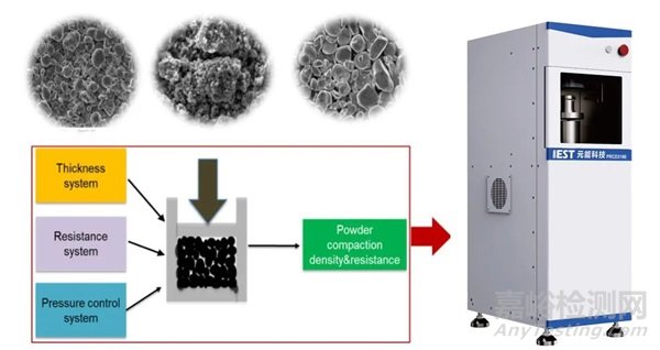 粉體電阻率和壓實(shí)密度是當(dāng)前鋰電行業(yè)材料監(jiān)控的重要指標(biāo),其測定通常要在不同量化壓力下完成,粉體受壓過程是一個(gè)復(fù)雜的物理現(xiàn)象,涉及顆粒間的相互作用、位移、變形以及最終形成的緊密堆積狀態(tài)。在受壓的初始階段,粉體顆粒處于松散堆積狀態(tài),顆粒間具有較大的孔隙;外力作用下顆粒逐漸移近、分離、滑動(dòng)和轉(zhuǎn)動(dòng),使得顆粒重新排列,形成緊密的堆積結(jié)構(gòu),導(dǎo)致粉體的體積迅速減少,密度迅速增加。隨著壓力的增大,粒間的接觸點(diǎn)處開始發(fā)生彈性變形,顆粒間的空隙被進(jìn)一步壓縮,但顆粒本身并未發(fā)生永久性變形,粉體的密度繼續(xù)增加,但增加的速率逐漸放緩。當(dāng)壓力繼續(xù)增加時(shí),顆粒間的接觸應(yīng)力超過材料的屈服極限或強(qiáng)度極限,顆粒開始發(fā)生塑性變形或脆性破碎。塑性變形使得顆粒間出現(xiàn)永久接觸面,同時(shí)伴隨著冷焊接和強(qiáng)有力的機(jī)械嚙合作用。脆性破碎則導(dǎo)致顆粒粒徑減小,顆粒間的空隙進(jìn)一步被填充。在這個(gè)階段,粉體的密度顯著增加,并逐漸接近材料的理論密度。實(shí)際測試過程中,除了對材料進(jìn)行加壓,加壓之后的壓力釋放即卸壓階段也是行業(yè)材料監(jiān)控關(guān)注的重點(diǎn)。粉末在壓制過程中轉(zhuǎn)變成多孔體,基于粉末的密度隨當(dāng)前壓力的變化,可以確定了形成多孔基體中的應(yīng)力隨其應(yīng)變的變化。這能夠揭示在壓制過程中的壓實(shí),應(yīng)變硬化和脆性粉末顆粒的斷裂特征等。本文分別結(jié)合元能科技PRCD/PCD系列設(shè)備評估NCM、LCO、LFP三類粉體材料加壓卸壓過程中壓實(shí)密度的測定差異,為材料力學(xué)性能評估提供一種新思路。