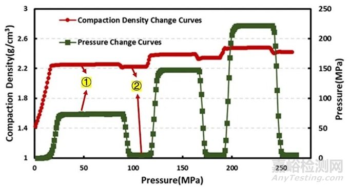 圖2.樣品壓實(shí)密度隨壓力變化的示意圖
