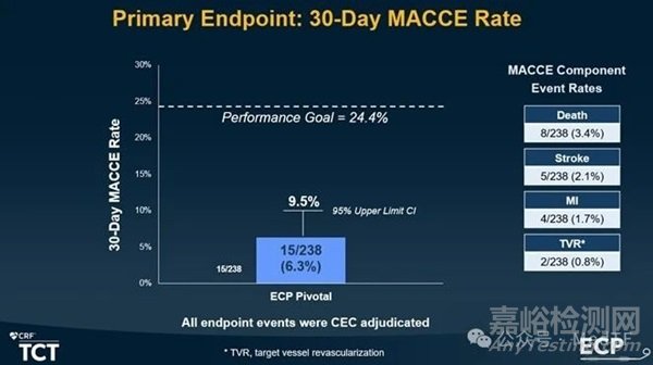 30天時的MACCE(主要不良心腦血管事件)發(fā)生率為6.3%,明顯低于預定義的性能目標。