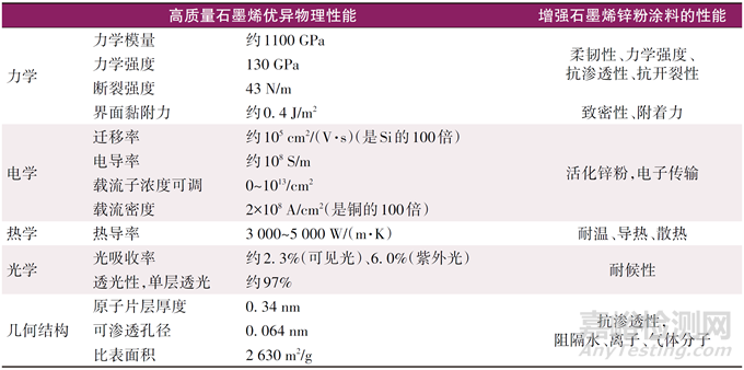 Table 2 The relationship between the unique structure,excellent physical properties and enhanced graphene zinc coating properties of high quality graphene materials
