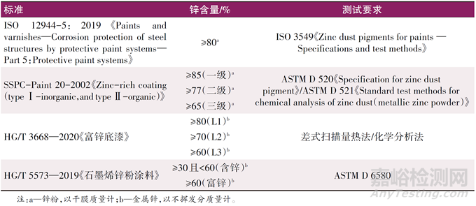 表3 環(huán)氧富鋅涂料和石墨烯鋅粉涂料標(biāo)準(zhǔn)對鋅含量的要求