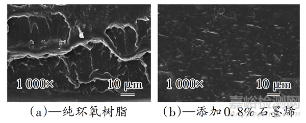 圖1 有/無石墨烯環(huán)氧樹脂截面SEM圖片