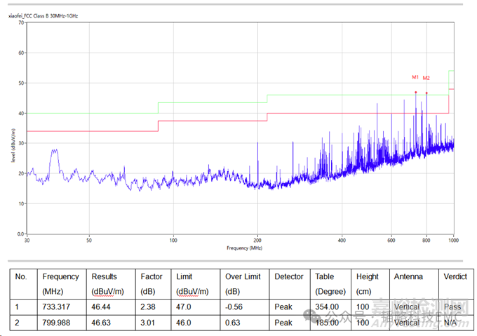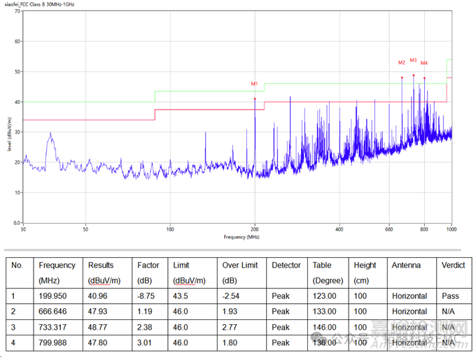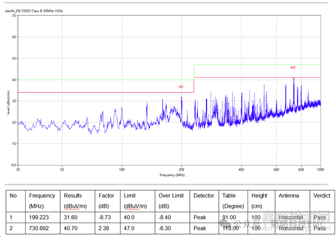 某客戶小型化的標(biāo)簽打印機(jī)產(chǎn)品在RE測(cè)試過程中測(cè)試超標(biāo),具體測(cè)試數(shù)據(jù)如下: