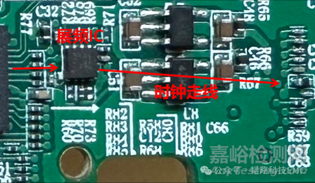 從測(cè)試數(shù)據(jù)可以看出,該產(chǎn)品的EMI超標(biāo)問題是一個(gè)高頻倍頻時(shí)鐘問題,經(jīng)過頻率確認(rèn),該時(shí)鐘倍頻問題點(diǎn)是產(chǎn)品上的一個(gè)小型化的攝像頭的通訊時(shí)鐘,而且客戶最終測(cè)試拿認(rèn)證報(bào)告的測(cè)試場(chǎng)地為10m場(chǎng),所以要求要把摸底的測(cè)試整改到余量充足。