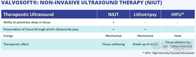 Valvosoft的無創(chuàng)超聲技術(NUIT),不像其它治療性超聲,要不是產生熱量,要不是打碎鈣化物。Valvosoft只是讓鈣化物產生裂紋,但不脫落,從而避免卒中風險。