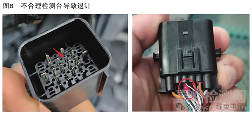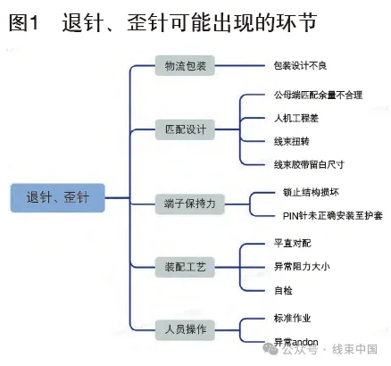 以某款SUV 車型為例,整車上存在超過(guò)1000 個(gè)線束插接件,每天裝配車間都會(huì)反饋線束插接后退針、歪針問(wèn)題,后續(xù)檢驗(yàn)車間也有反饋插接不良造成的電器功能問(wèn)題??傮w上看主要分為退針、歪針和虛接的故障模式。