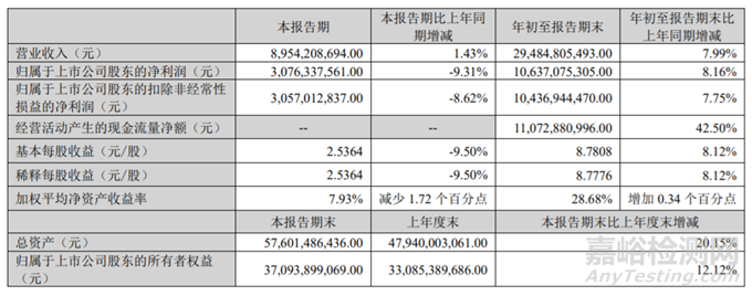 2024 年前三季度,公司實現(xiàn)歸屬于上市公司股東的凈利潤 1,063,707.53 萬元,較上年同期增長 8.16%,剔除匯兌損益影響后較上年同期增長 11.00%。