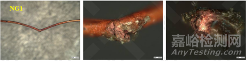 銅線發(fā)生腐蝕,腐蝕將導(dǎo)致銅線截面積減小,接觸電阻顯著增加,嚴(yán)重者發(fā)生斷裂開路。