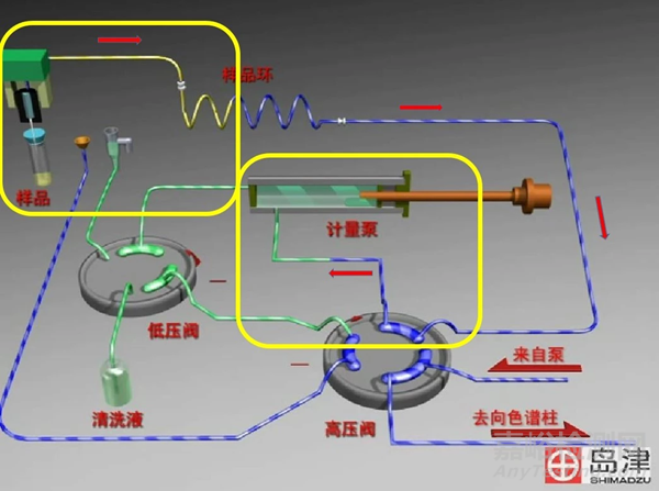 But in this Shimadzu system, since the metering pump is also inside, the cleaning fluid also participates in the measurement of the sample injection volume. Here we also answer a question everyone has, that is, the injector cleaning fluid needs to be degassed. Because if there are bubbles in the cleaning solution, the sample amount will be inaccurate.