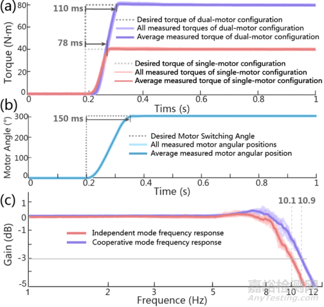 圖5:(a)最大扭矩 (b)位置階躍響應試驗 (c)轉(zhuǎn)矩頻率響應結(jié)果(圖片來自原文)