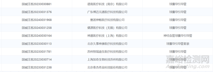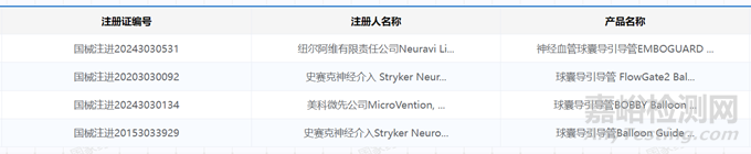 就球囊導引導管而言,國內(nèi)目前共有 23 款產(chǎn)品獲批,其中 4 款進口產(chǎn)品,分別來自史賽克、美科微先和紐爾阿維。國產(chǎn)產(chǎn)品有 19 款獲批,分別來自心凱諾醫(yī)療、億科醫(yī)療、賽諾神暢、加奇生物以及泰杰偉業(yè)等。