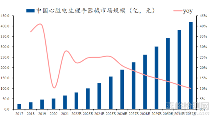 電生理賽道是當(dāng)下醫(yī)療器械市場(chǎng)中增長(zhǎng)最快的板塊之一。據(jù)Frost & Sullivan數(shù)據(jù),2021年全球心臟電生理器械市場(chǎng)規(guī)模達(dá)到 70.13 億美元,預(yù)計(jì)在2025年及2032年將分別達(dá)到 144.91 億美元以及 324.50 億美元。2021年中國(guó)心臟電生理器械市場(chǎng)規(guī)模達(dá)到65.80 億元,2025年預(yù)計(jì)將增至 157.26 億元,2032年達(dá)到 419.73 億元。