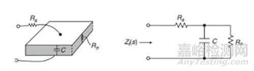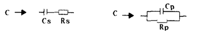 但這種模型是沒(méi)辦法進(jìn)行參數(shù)測(cè)量的,只能將等效模型進(jìn)一步簡(jiǎn)化,當(dāng)電容值較大時(shí),其容抗較小,可以忽略Rp,只考慮Rs;同理,當(dāng)電容值較小時(shí),其容抗較大,可以忽略Rs,只考慮Rp。根據(jù)容值的大小,則可以將電路進(jìn)一步等效為下圖: