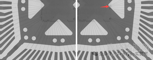 X射線檢查沒有發(fā)現(xiàn)故障Pin鍵合絲EOS燒毀斷線形貌,也未見鍵合點明顯異常。