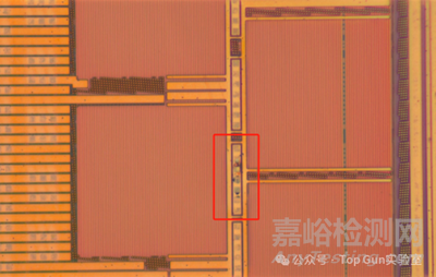 小結(jié):該芯片燒毀位置在Pad到一級保護(hù)電路之前的位置,大概率為過孔位置有問題,因此可以對芯片表面金屬進(jìn)行去除觀察。