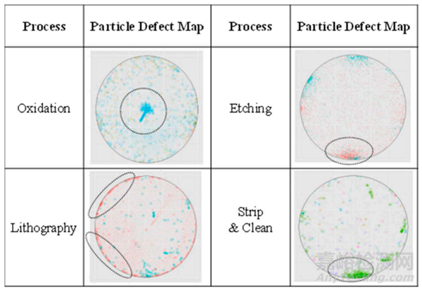*每個(gè)顆粒缺陷圖中的虛線橢圓所示,高密度區(qū)域表明正在處理的晶圓可能存在潛在缺陷