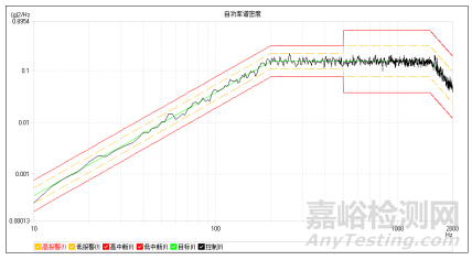功率譜密度指隨機(jī)信號(hào)的各頻率分量包含的功率(能量)在頻域內(nèi)的分布,單位用g2/Hz表示,曲線由橫坐標(biāo)-頻率、縱坐標(biāo)-功率譜組成如下圖示例。