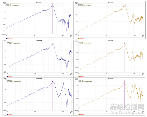 首先進(jìn)行正弦特征掃頻,觀察控制曲線穩(wěn)定性,讀取響應(yīng)曲線中響應(yīng)加速度峰值與被測物一階固有頻率。后進(jìn)行隨機(jī)振動(dòng)試驗(yàn),觀察控制曲線穩(wěn)定性、曲線形狀與目標(biāo)譜的一致程度、加速度總均方根值(Grms)與目標(biāo)值的偏離程度,判定控制效果是否良好。讀取響應(yīng)曲線中的Grms響應(yīng)值,曲線特征與掃頻曲線特征的一致性。若響應(yīng)值過小,則可能存在監(jiān)測點(diǎn)松動(dòng)問題,響應(yīng)值過大,則可能是控制點(diǎn)位選擇不合理造成共振、工裝或被測物結(jié)構(gòu)不穩(wěn)定等問題,若曲線形狀特征改變,則被測物結(jié)構(gòu)可能發(fā)生改變,如結(jié)構(gòu)斷裂、元件脫落等。