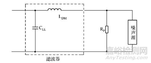 如下圖所示,為濾波器差模EMI信號(hào)濾波網(wǎng)絡(luò)結(jié)構(gòu)等效電路: