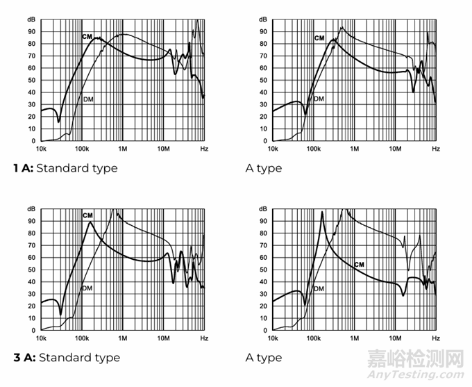 醫(yī)療設(shè)備由于受到漏電流的限制, 有時(shí)不使用共模濾波電容, 這時(shí)需提高扼流圈的高頻特性?