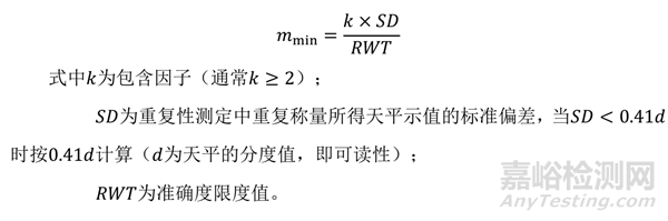 最小準確稱量值(mmin)是滿足電子天平的重復性測定標準前提下,可稱量的最小樣品凈質(zhì)量。電子天平的最小準確稱量值可以通過以下公式進行計算: