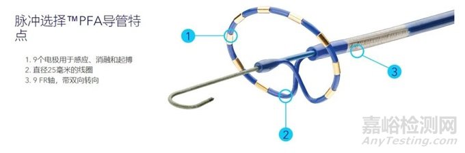 PulSelect 通過圓形多電極陣列導管提供雙極、雙相脈沖電場,已經獲得 FDA 和 CE批準。但其環(huán)形設計在肺靜脈貼合性、環(huán)形尺寸單一(25mm)、大尺寸鞘管(10Fr)等方面略有不足,也使得美敦力在與波科、強生的競爭中處于被動。