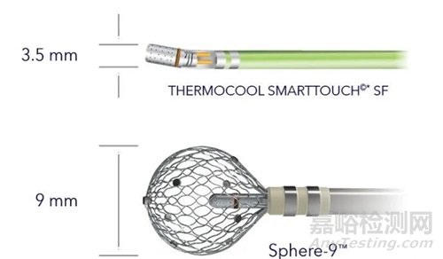 ▲強生 THERMOCOL SMARTTOUCH SF 雙能導管和美敦力 Sphere-9 晶格消融導管