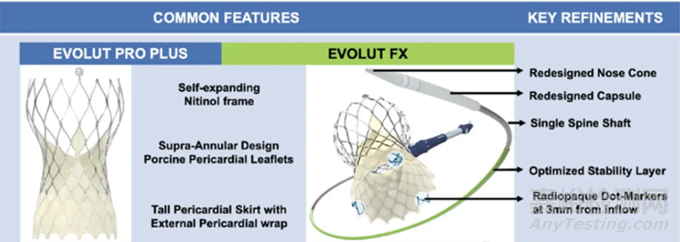 Evolut FX+ 在保留 Evolut FX 三個顯影標記的基礎上,提供一個更大的冠狀動脈進入窗口,這個開口尺寸是之前 Evolut 系列的 4 倍。這樣設計 Evolut FX+ 為導管的可操作性提供了更大的空間,以便于接近不同患者解剖結構的冠狀動脈。