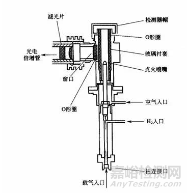 這兩種特征光的光強度與被測組分的含量均成正比,這正是FPD的定量基礎(chǔ)。特征光經(jīng)濾光片濾光,再由光電倍增管進行光電轉(zhuǎn)換后,產(chǎn)生相應(yīng)的光電流。經(jīng)放大器放大后由記錄系統(tǒng)記錄下相應(yīng)的色譜圖。