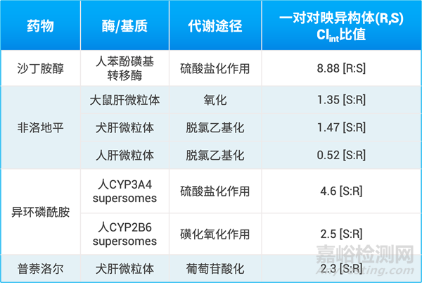 表1. 一對對映異構(gòu)體藥物在體外代謝體系中的清除率比值[1]