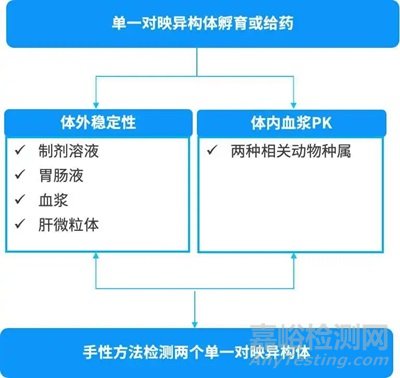 手性反轉(zhuǎn)研究需要先通過手性合成或手性分離得到單一對映異構(gòu)體。體外研究可選擇制劑溶液、胃腸液、血漿、肝微粒體等體系進(jìn)行評估。孵育單一對映異構(gòu)體,并采用手性分析方法檢測一對對映異構(gòu)體在體外體系中的濃度變化。如果孵育R構(gòu)型化合物,同時檢測R和S構(gòu)型,若孵育體系中檢測到S構(gòu)型,則說明會發(fā)生手性反轉(zhuǎn)。體內(nèi)研究則選擇相關(guān)動物種屬,單一對映異構(gòu)體給藥,使用手性分析方法檢測一對對映異構(gòu)體的藥物濃度。類似體外的情況,如果采用R構(gòu)型給藥,體內(nèi)檢測到S構(gòu)型的藥物,則說明在體內(nèi)發(fā)生了手性反轉(zhuǎn)。